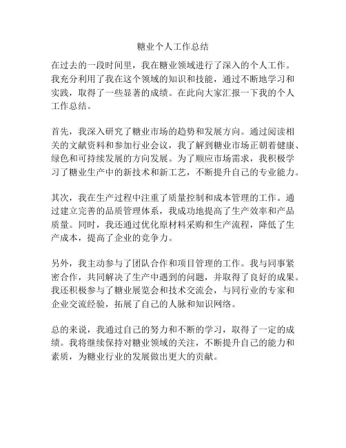 本工作总结对我个人在糖业行业的工作经验进行了系统的总结和归纳。