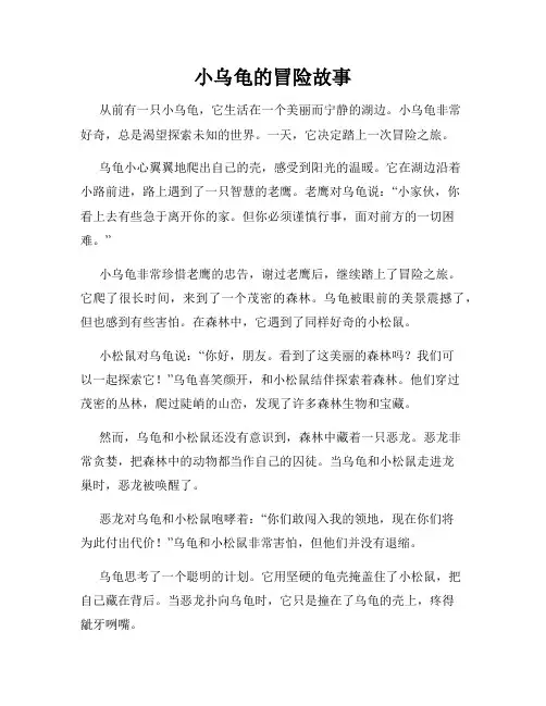 小乌龟的冒险故事从前有一只小乌龟,它生活在一个美丽而宁静的湖边。