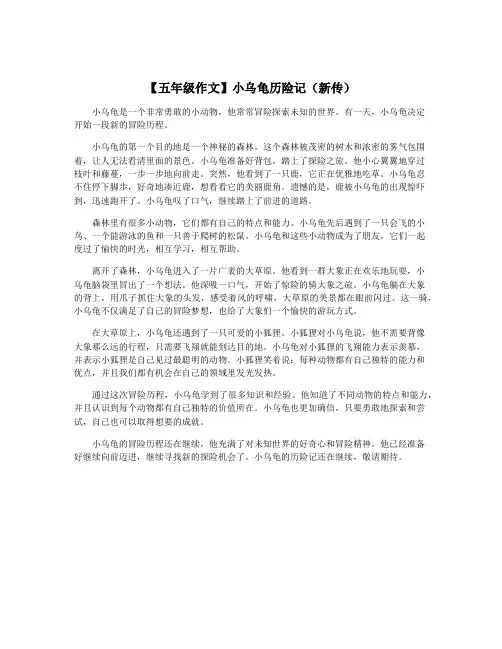 【五年级作文】小乌龟历险记(新传)小乌龟是一个非常勇敢的小动物,他常常冒险探索未知的世界。