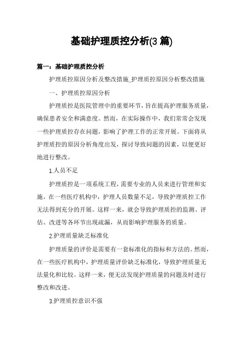 基础护理质控分析(3篇)篇一:基础护理质控分析护理质控原因分析及整改措施_护理质控原因分析整改措施一、护理质控原因分析护理质控是医院管理中的重要环节,旨在提高护理服务质量,确保患者安全和满意度。