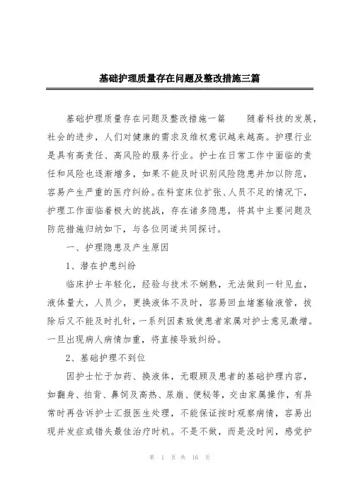 基础护理质控存在问题及整改措施(共3篇)基础护理质控存在问题及整改措施(共3篇)第1篇:护理质控存在问题整改措施护理工作整改措施年3月,市护理质控中心对我院进行了护理质量检查。