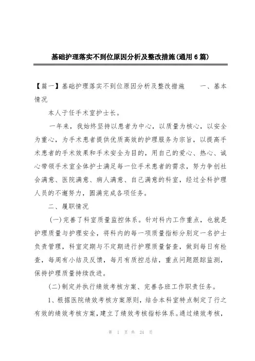 基础护理落实不到位原因分析及整改措施范文(精选篇)基础护理是医院护理工作的重要组成部分,它直接关系到病人的生命安全和身体健康。