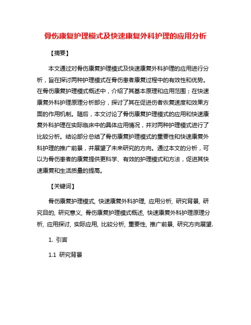 1.快速康复护理概述近几年,中国交通运输业的快速发展导致交通事故频发,骨科疾病的发病率逐年上升。