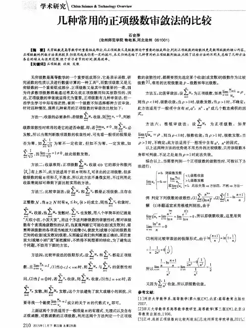 注意:以上方法仅适用于正项级数,对于一般的级数,还需要使用更加复杂的方法进行证明。