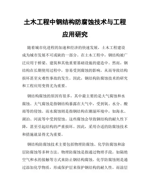 土木工程中钢结构防腐蚀技术与工程应用研究随着城市化进程的加速和经济的快速发展,土木工程建设成为城市发展不可或缺的一部分。