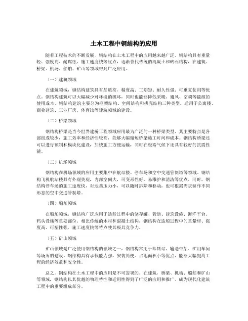 钢结构在土木工程中的应用钢结构是当今土木工程建设当中的重要材料,并且具有非常广泛的应用范围。