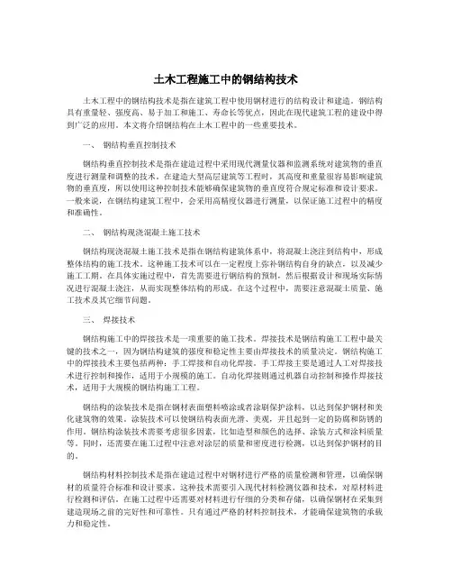 土木工程施工中的钢结构技术土木工程是指利用土木工程材料,运用土木工程原理和方法,进行土木工程建筑施工和管理的综合性学科。