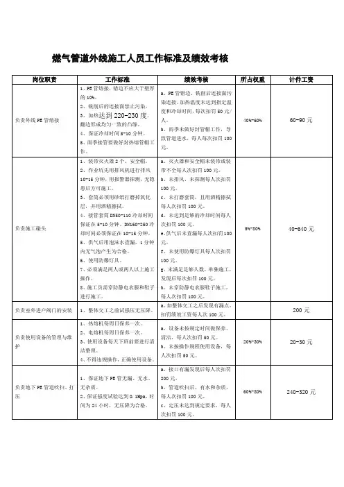 三、考核方法1. 实地考核实地考核是最为直接和有效的考核方法,企业可以直接对员工进行监督和检测,以确保员工的实际能力和他们所掌握的知识水平相符合。