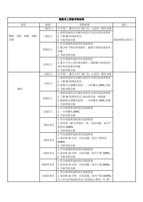 3.高级操作岗工评定标准(1)技能水平:掌握专业知识和高级操作技能,能够处理复杂操作问题和故障。