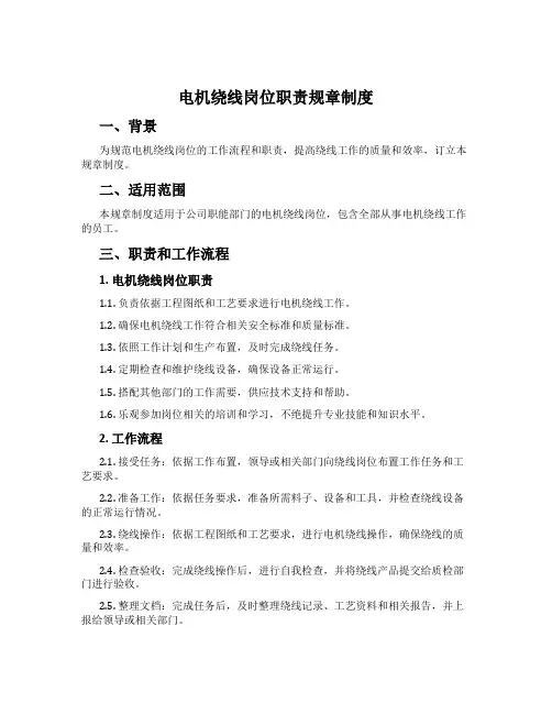 2. 工作流程2.1. 接受任务:依据工作布置,领导或相关部门向绕线岗位布置工作任务和工艺要求。