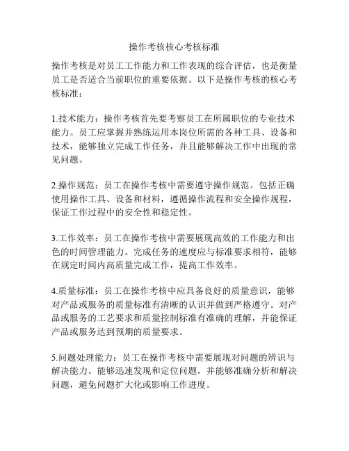操作考核核心考核标准操作考核是对员工工作能力和工作表现的综合评估,也是衡量员工是否适合当前职位的重要依据。