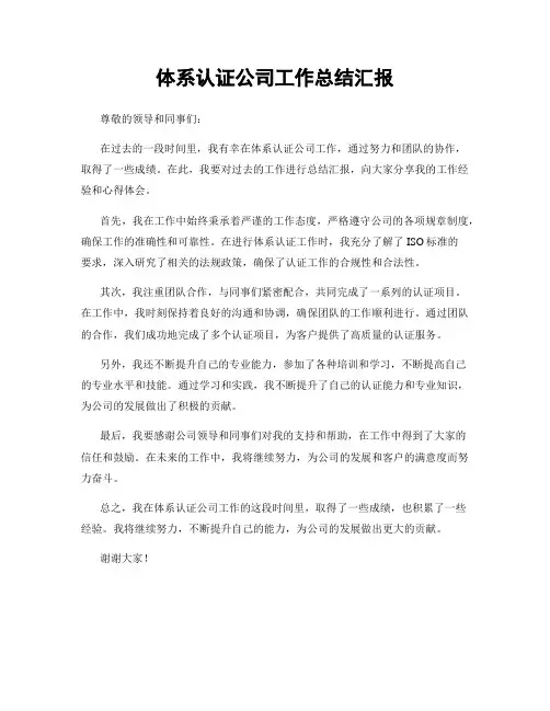 质量管理体系认证年终总结汇报尊敬的各位领导、同事们: