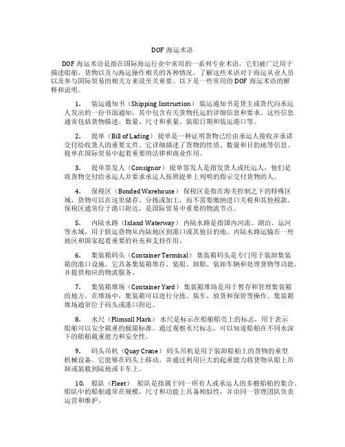 以下是一些常用的DOF海运术语的解释和说明。