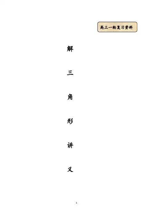 高三一轮复习资料解三角形讲义1.直角三角形中各元素间的关系:在△ABC 中,C =90°,AB =c ,AC =b ,BC =a 。