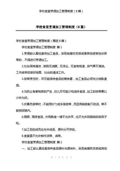 学校食堂烹调加工管理制度(8篇)学校食堂烹调加工管理制度(精选8篇)学校食堂烹调加工管理制度篇11.烹调前认真检查待加工食品,发现有腐烂变质或者其他感官性状异常的,不得进行烹调加工。