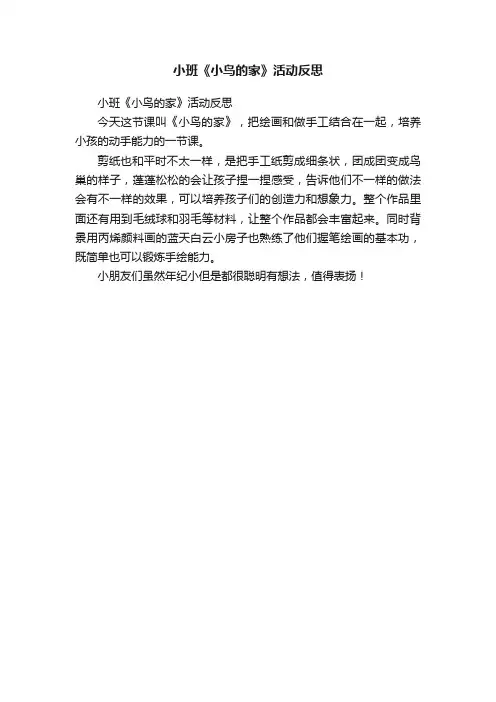 小班《小鸟的家》活动反思