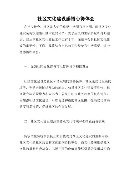 社区文化建设感悟心得体会在当今社会,社区是人们的重要生活圈和社交圈。