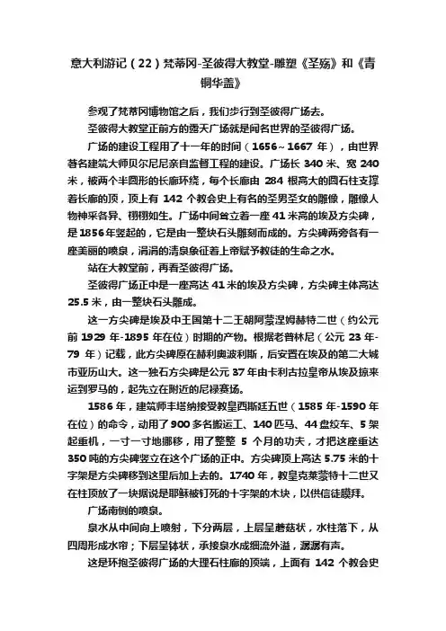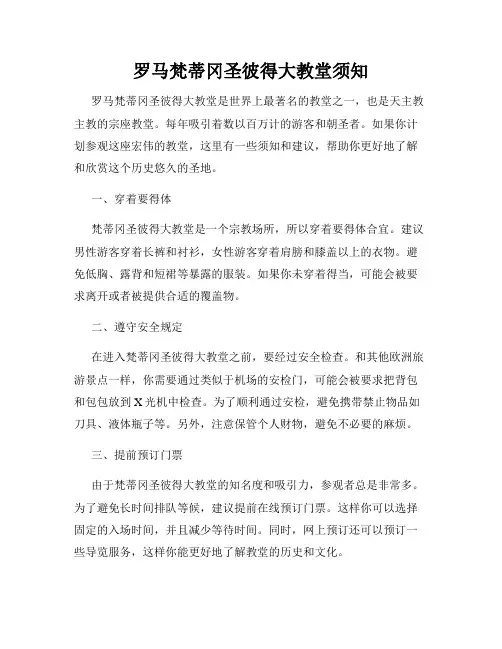 四、参观礼仪在参观圣彼得大教堂时,游客需要保持安静和尊重。