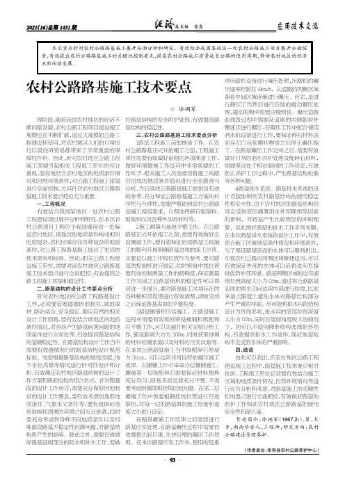 农村公路路基施工技术及质量控制分析一、引言农村公路是连接农村地区的重要交通工程,对农村经济发展和农民生活有着重要的意义。