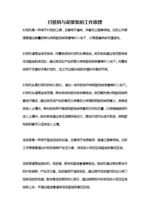 打桩机与泥浆泵的工作原理打桩机是一种用于打桩的工具,主要用于建筑、深基坑工程等领域。