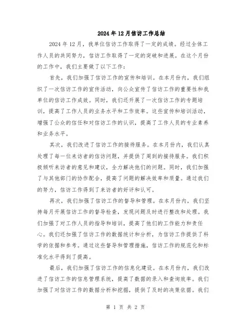 2024年12月政务服务中心主任个人工作总结2023年12月,作为政务服务中心主任,我一直坚持以人民为中心的理念,积极推动政务服务工作的创新和升级,以提高政务服务水平,为百姓提供更加便捷、高效的服务。