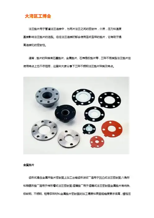 各种垫片知识整理学习1、非金属平垫片使用范围:HG/T20615/HG/T20623规定的公称压力Class150~Class600的钢制管法兰非金属平垫片。
