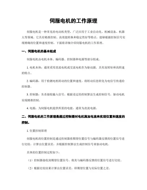 伺服电机的工作原理伺服电机是一种常见的电动机类型,广泛应用于工业自动化、机械设备、机器人等领域。