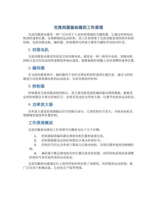 一、原理交流伺服电机是通过将交流电转化为机械能来实现运动控制的装置。