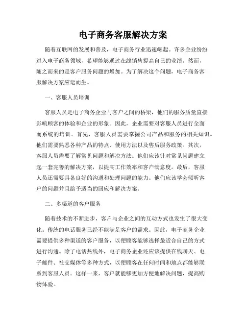 一、客服人员培训客服人员是电子商务企业与客户之间的桥梁,他们的服务质量直接影响顾客的体验和企业的形象。