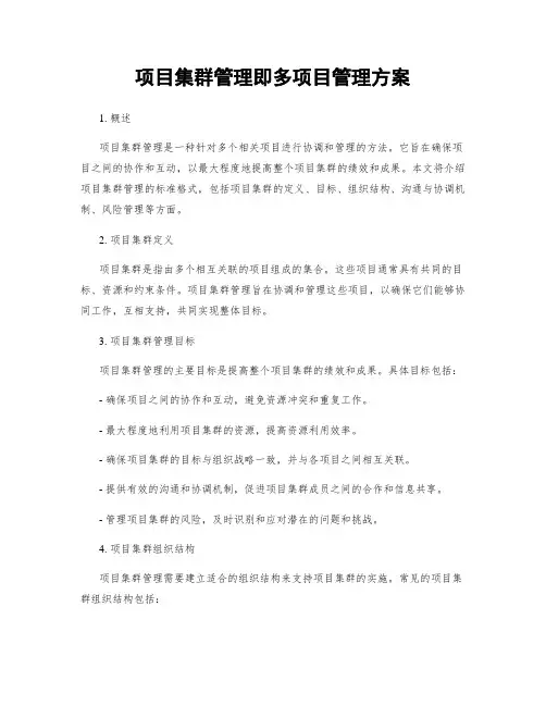 项目集群管理即多项目管理方案1. 概述项目集群管理是一种针对多个相关项目进行协调和管理的方法。