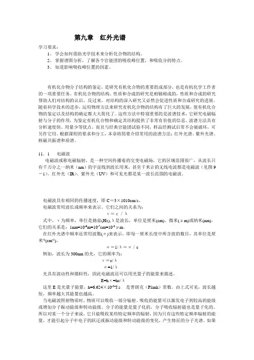 第九章红外光谱学习要求:1、学会如何借助光学技术来分析化合物的结构。