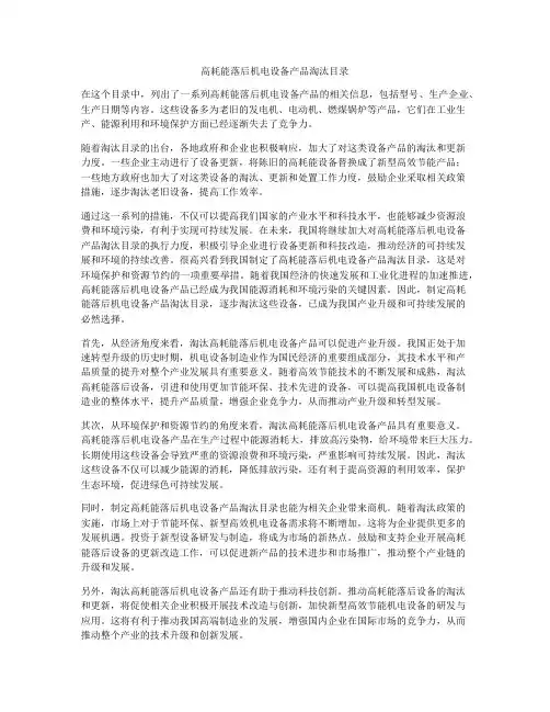 背景1. 高耗能落后机电设备的定义高耗能落后机电设备是指那些能效指标低、能耗高、技术落后、生产效率低下、使用寿命短等问题突出的机电设备。