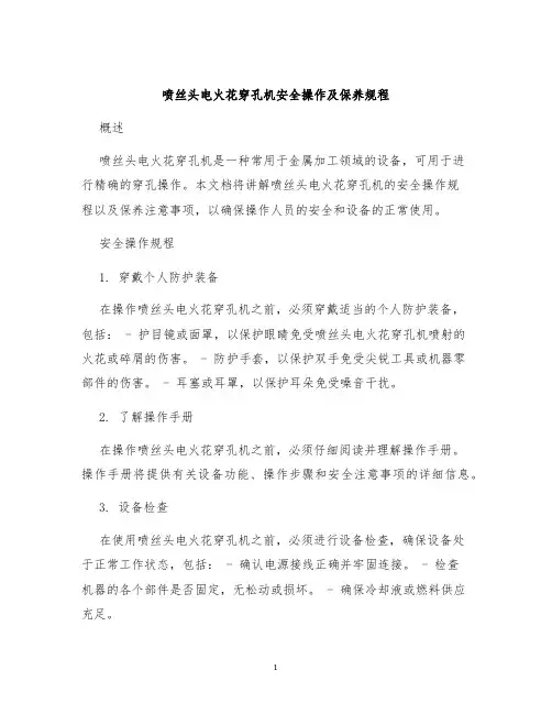 五、设备维护1. 定期对电火花穿孔机进行保养,清洁设备表面,并检查设备的各项功能是否正常。
