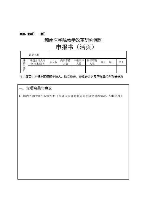 教学改革研究项目申报书推荐一、项目概述本项目旨在研究并推进教学改革,提出创新的教学方法和策略,提高教学质量和效果。