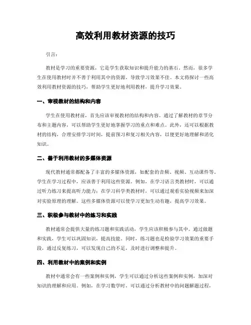 高效利用教材资源的技巧引言:教材是学习的重要资源,它是学生获取知识和提升能力的基石。