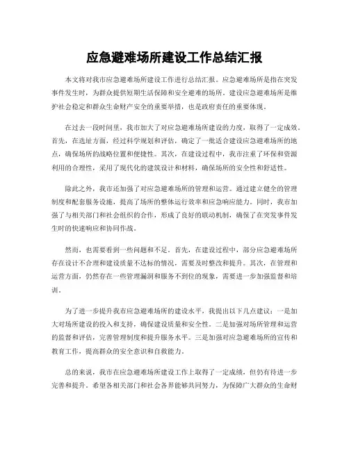 应急避护场所情况汇报根据最新的调查和统计数据显示,我国应急避护场所建设工作取得了显著成绩,但仍存在一些问题和不足。