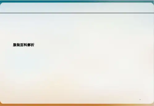 1.特性:毛织物外观光泽自然,颜色莹润,手感舒适,重量轻,品种风格多。用毛织物制做的衣服 挺括,有良好的弹性,不易折皱,耐磨,吸湿性、保暖性、拒水性较好,但易被虫蛀,需经防蛀整 理或保藏时使用防蛀药剂。 优点:舒适保暖有弹性,坚牢耐磨抗皱佳,面料有身骨,易褪色。 缺点:易缩水,易虫蛀,会起球,耐热差。 2.种类:按毛织物生产工艺和外观特征分类的方法,毛织物可分为精纺呢绒、粗纺呢绒、长毛绒和 驼绒,简称精、粗、长、驼四大类。