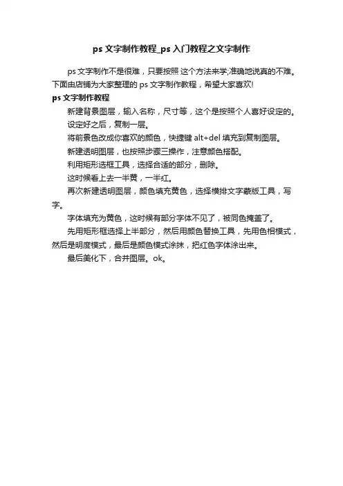 3. 金属质感文字效果如果你想要为文字添加金属质感,首先在Photoshop中创建一个新的图层,并输入所需的文字。