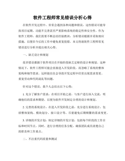 体会篇在我多年的从业经验中,我也积累了一些关于软件工程的体会。