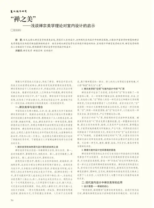 关键词:禅宗美学;室内设计一、禅宗的背景禅宗是佛教中国化的产物。