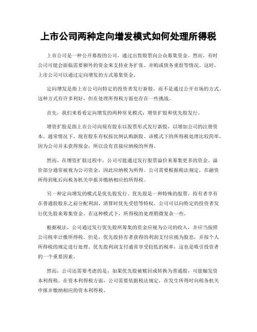 上市公司两种定向增发模式如何处理所得税上市公司是一种公开募股的公司,通过出售股票向公众募集资金。