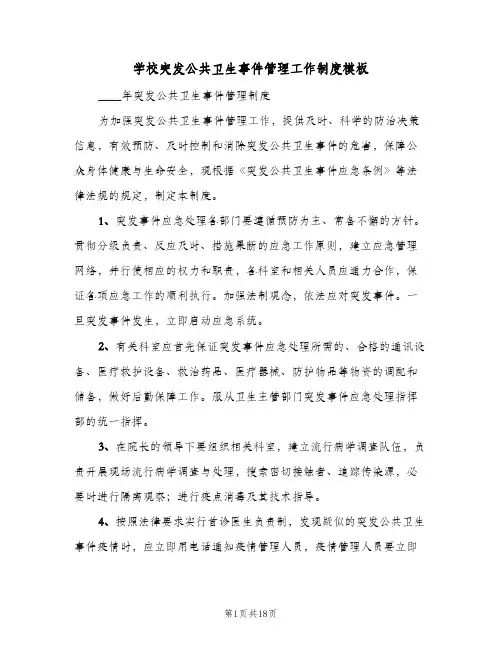 突发公共卫生事件应急处理工作制度范本一、背景介绍在当今社会,突发公共卫生事件频发不断,给社会稳定和人民生命安全带来了严重威胁。