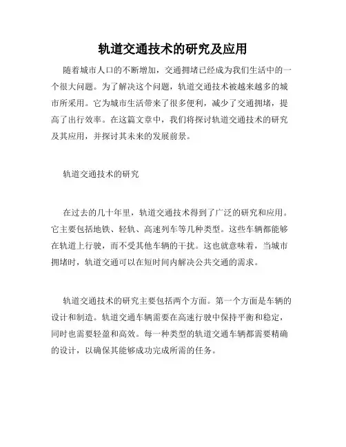 轨道交通技术的研究在过去的几十年里,轨道交通技术得到了广泛的研究和应用。