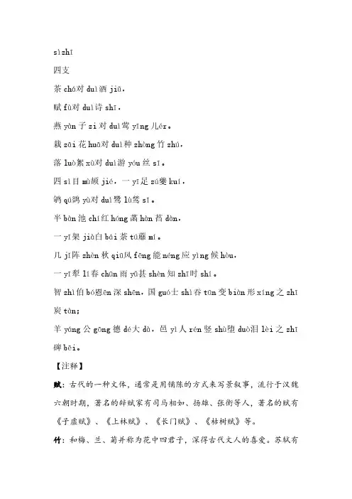 声律启蒙四支全文解释《声律启蒙四支全文解释》《声律启蒙四支》是清代儿童启蒙读物,由清代文学家袁枚所著。