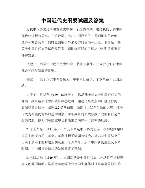 自学考试中国近代史纲要真题及答案自学考试是中国教育体系中的一项重要考试,其中国近代史纲要是一门重要的考试科目。