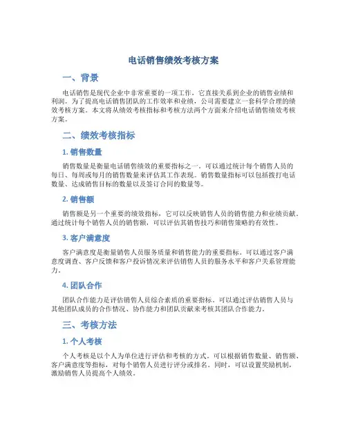 电话销售部门绩效考核方案背景电话销售作为一种重要的营销手段,在现代商业中发挥着越来越重要的作用。