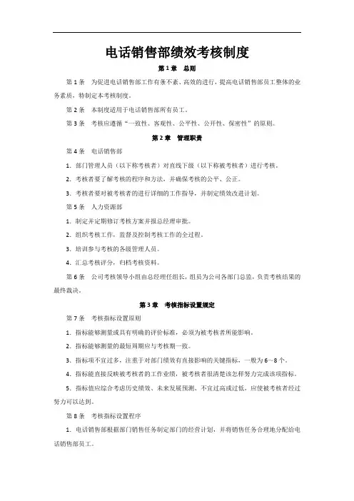 基于此,电话销售部门的考核目标应包括:1.销售业绩。