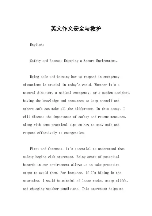英文作文安全与救护English:Safety and Rescue: Ensuring a Secure Environment。
