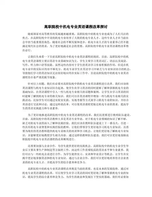 高职院校中机电专业英语课程改革探讨随着国家对高等教育的发展越来越重视,高职院校中的机电专业也成为了人们关注的焦点。