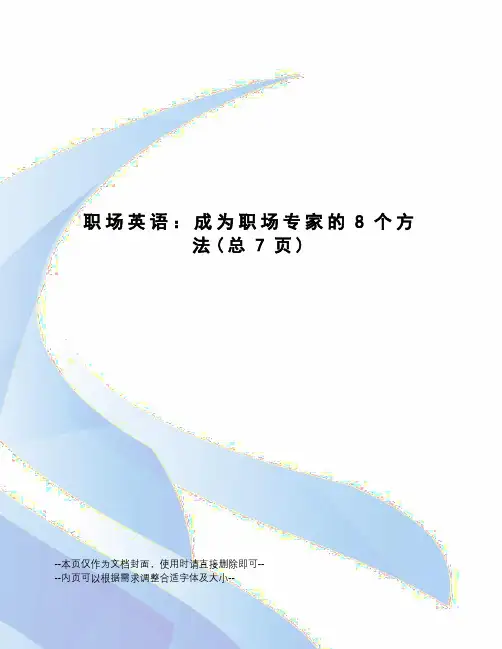 职场英语:成为职场专家的8个方法(总7页)--本页仅作为文档封面,使用时请直接删除即可----内页可以根据需求调整合适字体及大小--职场英语:成为职场专家的8个方法这是一篇由网络搜集整理的关于职场英语:成为职场专家的8个方法的文档,希望对你能有帮助。